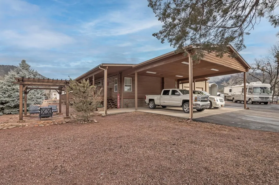 This property offers a great combination of interior comfort and impressive outdoor and garage spaces. The garage, stands out with its size, amenities, and the car lift. Here are a few key features: INTERIOR FEATURES: Spacious log sided design, vaulted ceilings, wood burning fireplace, easy care laminate flooring, cooks delight kitchen with an island, stainless steel appliances, plenty or cabinets, drawers, and counter space. Master bedroom with ensuite and luxurious bath, double sinks, walk-in closet, soaking tub. Split floor plan with two guest bedrooms and bath, new roof October 2023. EXTERIOR FEATURES: Mountain Views, wrap around deck, covered RV Parking, 3 vehicle carport. GARAGE AND WORKSHOP: Amazing garage space is 1600 sq ft metal building, 2 overhead doors, car lift, 3/4 bath, compressor/ storage shed.