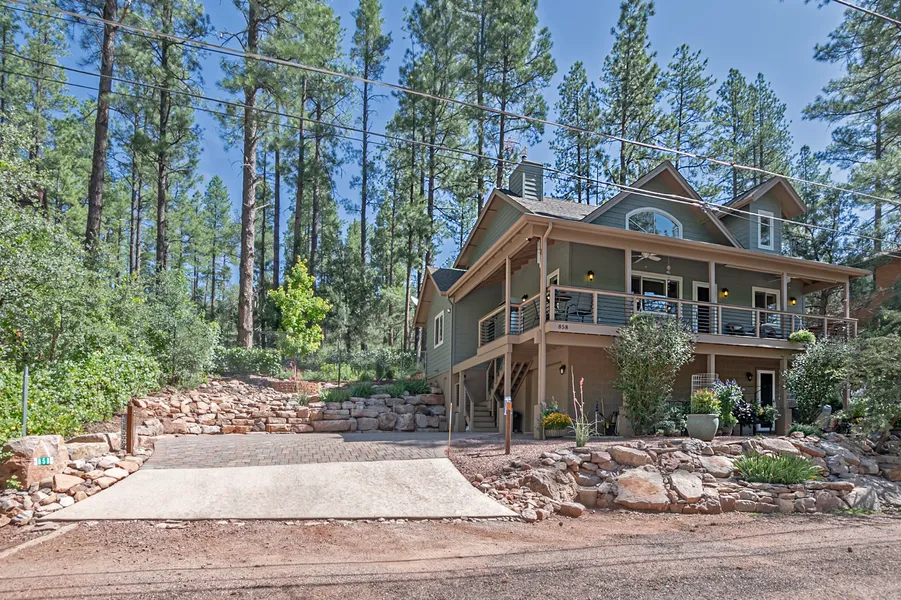 This custom-built JFC home amidst towering Ponderosa Pines in the desirable neighborhood of Kohl's Ranch awaits you. The pride of ownership abounds in every inch of this beautiful property. The Seller had the home built and every detail was thoroughly planned. The covered trex deck includes a propane BBQ, electric smoker and is ideal for relaxing and entertaining with spectacular mountain views of Saddleback Mountain. Upon entering the home, you are embraced with natural light, vaulted ceilings, and exposed beams. The pellet stove is inviting and provides a warm and cozy great room. The vinyl plank flooring leads you through the functional open kitchen with quartz counter tops, and a gas range. There is ample storage in the beautiful soft close cabinets. The main level offers a guest bedroom, full bathroom and study with a closet for an included stacking washer and dryer. Upstairs you ar...