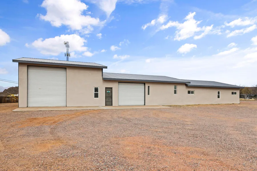 Endless Possibilities at Jakes Corner! This one-acre property is zoned GU, allowing for both commercial and residential use, and features a private well. The updated home offers 3 bedrooms and 2 ¾ bathrooms, with a beautifully remodeled kitchen showcasing new cabinets, stunning granite countertops, a tiled backsplash, new appliances, a kitchen island with breakfast bar, and a dining area. The open-concept family room includes new ceiling fans and vinyl plank flooring throughout. The large RV garage with a roll-up door provides ample storage space, while the second garage, also with a roll-up door and epoxy flooring, is currently set up as a game/bar room. This space boasts foamed insulation, ¾-inch plywood behind the drywall for mounting, ceiling fans, a walk-up bar, and direct access to the backyard, which features a covered area with shelved storage. The exterior of the home is stucco with a brand-new metal roof, and the property also includes 6 storage lockers (10x10), 4 covered parking bays, and a large water storage tank. Fenced and gated, the property offers stunning mountain views and is zoned for horses—perfect for large storage or event opportunities. Walk to Jake's Bar & Grill for a burger, drink, and live music! This property is easy to show—schedule your appointment today!