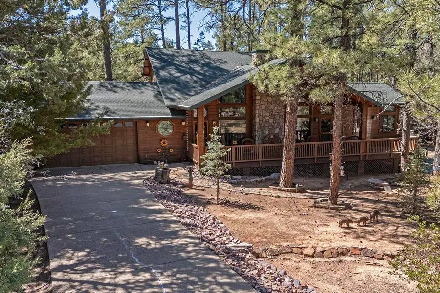 Public Remarks: Nestled amount towering pines in a private, gated community, this fabulous turn-key cabin offers breathtaking mountain views and comes FULLY FURNISHED--ready for you to enjoy! Step inside to a spacious great room featuring soaring wood cathedral ceilings, wood flooring, and a striking rock-faced gas fireplace. A wall of windows fills the space with natural light and showcases the stunning scenery, while the expansive covered wraparound deck with built in BBQ and opens to a large back deck with hot tub, which steps down to a propane fire pit--perfect for enjoying crisp mountain evenings. The main level includes a luxurious primary suite with an upgraded ensuite bath and private access to the back deck. A comfortable guest bedroom and a full bath complete the main floor. Upstairs, a spacious loft serves as the ultimate family game room, complete a cozy electric fireplace. An additional bedroom and bath for guest and family. Situated on a generous 0.52 acre lot, this property provides ample privacy while keeping you close to nature. With a large garage for all your mountain gear, this home is the perfect getaway for those seeking tranquility, adventure, and the beauty of the outdoors. Don't miss this rare opportunity--schedule your private showing today!