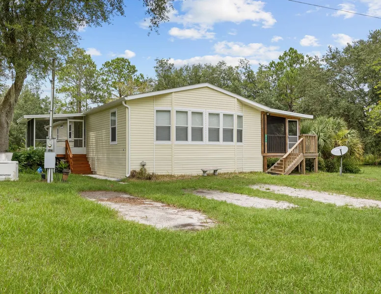 Cozy Country Retreat on 14+ Acres! this charming manufactured home offers the perfect blend of tranquility and convenience. With 2 bedrooms, 2 bathrooms, and an additional versatile room, this property is ideal for those seeking a serene country lifestyle without sacrificing modern comforts. The living room is open and inviting with an open concept. The well-appointed kitchen boasts ample cabinetry, modern appliances, and a breakfast bar for casual dining. The adjacent dining area offers plenty of space for family meals and gatherings. A separate laundry room with washer and dryer hookups adds convenience and functionality to your daily routine. Master bedroom is spacious and features and ensuite bathroom with a soaking tub and separate shower. There is a third room that can be used as a guest room, or office. Outside, Over 14 acres of beautiful, usable land provide endless opportunities for outdoor activities, gardening, and enjoying nature. The property is dotted with mature trees and offers plenty of privacy. A 40-foot storage container and a well-maintained shed offer ample storage space for tools, equipment, and recreational gear. The included generator ensures youre always prepared for any power outages, providing peace of mind and uninterrupted comfort. Enjoy the peace and quiet of rural living while still being within a reasonable distance to local amenities and services. Fish and hunt on your own property and Property backs up to the Gilchrist Hunting Club as well.