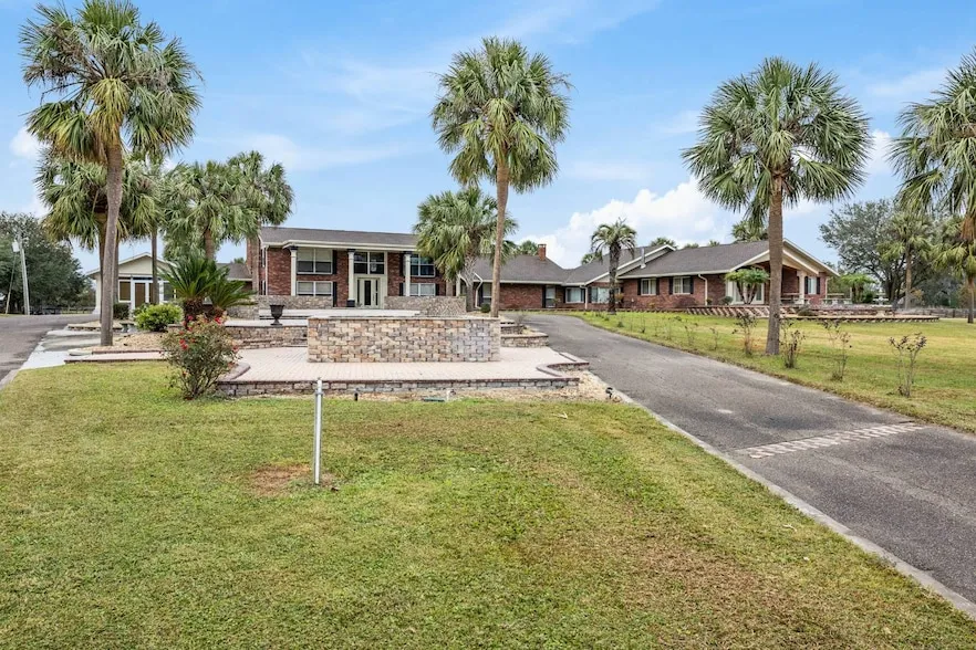 Breathtaking 192 acre Equestrian Estate and Event Center! This massive 13,500 square foot estate home is perfectly set up for either private use or as a large event facility and Inn. The exterior boasts acres of 4 board fencing that was replaced in 2017, 8 septics with lift station, 5 WELLS replaced in 2022, one of which is EPA monitored, three 500 gallon diesel fueling tanks, 2 hay barns with NEW METAL ROOFS and a 10 space RV PARK. The 7 AC UNITS were all added and replaced in 2018 and the NEW ROOF was installed in 2022. The larger center aisle barn is 23 stalls, tack room and wash areas with a 3 bedroom 2 bath apartment. The smaller barn is 16 stalls with tack room and a 1 bedroom apartment. Both barn apartments have full kitchens. There is 90 acres of coastal hay that is currently being harvested and sold. The property has also been approved for 10 additional units on the property. The main home is nothing short of spectacular! There was a nearly 6000 square foot addition added in 2018. The 12 bedrooms all have en suite baths with additional 1.5 bathrooms. The home is currently being used as an event center with a welcome center in the foyer. The entire home is beautifully adorned with imported Mexican Tile. Each bedroom is themed with different states and countries and are perfect for large parties. Three of the 3rd level rooms all have balconies and access to the 100 foot long balcony with extraordinary views! The BRIDAL SUITE is magnificent with its own private deck, small kitchen, jacuzzi tub and large walk in closets. The Dining Hall has a 100 person capacity and there is a commercial kitchen with a 1500 gallon grease trap and separate commercial kitchen storage areas which are equipped to handle large scale events. Just off of the dining hall is the outdoor Tiki Bar with beer draft, full bar and large seating capacity at the bar. There is ample amounts of covered lanai seating and a massive outdoor entertainment area that is large enough for very large events. Also, there are 2 covered 8 person Hot Tub pavilions. The propane generator is large enough to run the entire main home. Just off the outdoor area is a newly constructed event partially enclosed event center that hosts concerts, weddings and large corporate events. There is also a gift shop and an ice cream shop! The main gated entry to the property is completely lined with mature, canopied oaks for a magnificent drive down the 1/4 paved driveway. The possibilities with this property are too many to mention. All furnishings and farm equipment are included with full price offer.