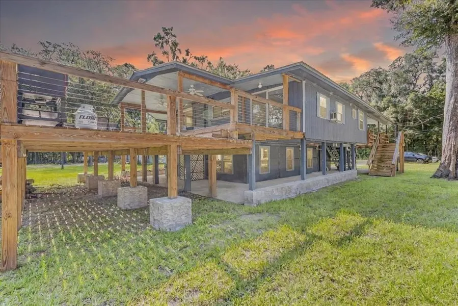 Life is better on the Suwannee River! Welcome to this amazing Suwannee River retreat located a stones throw to the water. A gorgeous 3 bedroom/3 bathroom home with full wrap around porches as well as a completely finished concrete block space under the home perfect for a game room or an entertaining space. With a total square footage of 5,674 sqft. you will fall in love with the full wrap around porches, multiple entrances to gain access to the home up top or enter the finished space below. Front porches offer a magazine view of the Great Suwannee River an awesome covered deck perfect for spending time watching the boats go by as well as an open deck perfect for grilling out and entertaining. Not a fan of carrying groceries up stairs, no worries here, this property has an elevator for easy access to enter on the bottom floor and easily travel up top so you don't have to carry groceries o...
