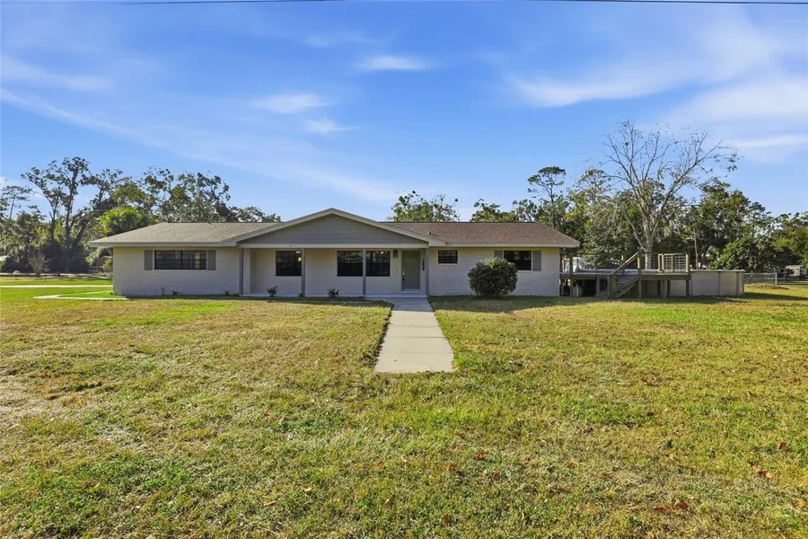 Spacious 3BR/2BA home on nearly 3/4 acre—entire city block—in the heart of Trenton! Solid concrete block & brick construction with a 2024 roof and 2025 HVAC. Interior offers large bedrooms, an open & functional layout, and a spacious kitchen with newer stainless appliances. Covered back lanai overlooks the fenced yard, above-ground pool, and wood deck—perfect for entertaining. Plenty of room for pets, gardening, or play. Includes 2-car garage & paved drive. Rare in-town privacy with quick access to top-rated Gilchrist County schools, the Suwannee River, and the Gulf Coast.
