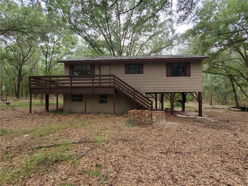 Peaceful home in the woods. This quaint 2/2 in Gilchrist county sits on 10 wooded acres, away from all the hustle and bustle! Laminate floors throughout. Spacious wooden deck overlooks the property. Storage and carport on the bottom, living space on top. Storage shed on site, fenced, and ready to move in. Call today!