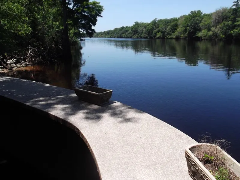 Private spring and excellent elevation! Immaculately updated/restored ground level block home on the world famous Suwannee River with excellent views of the river and your own private spring. The 8.6 acres is fully landscaped with mature azaleas and camellias, large trees, and walking/nature trails throughout. The home features a new feel, with beautiful wood cabinets and quartz countertops, newer appliances, a new roof and updated bathrooms, but the original charm has been left in tact with restored hardwood floors and glass door knobs. Large picture window offers views of the spring and river, or warm up by the cozy fireplace! A guest/3rd bedroom has been added in the garage area. Excellent schools in a friendly rural community.
