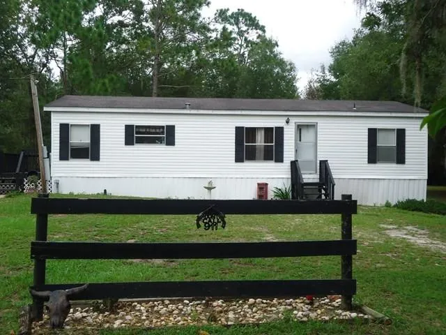 GREAT LOCATION!! This affordable 2000 Homes of Merit home features a split plan with 3 Bdrms and 2 Bathrms. Sitting on a 1 ACRE lot on a country lane, just 300' off the paved road, you have the best of both worlds! Easy commute to Bell, High Springs, and Gainesville. The country inspired home dcor and updated, wood laminate and vinyl floors give it a fresh feel. Master Bath has separate garden tub and shower. Enjoying the beauty of the property and relaxing is easy from the 8'x28' deck. If you have dogs, the kennels will be very useful to you! Also useful is the workshop and utility building here. Just a little over 3 miles to Bell and close to freshwater springs and the Suwannee River. Call to view this property today!
