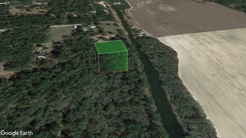 Coordinates: NW corner: 29.715707, -82.937454 (Road) NE corner: 29.715710, -82.936991 (Road) SW corner: 29.715346, -82.937450 SE corner: 29.715348, -82.936987