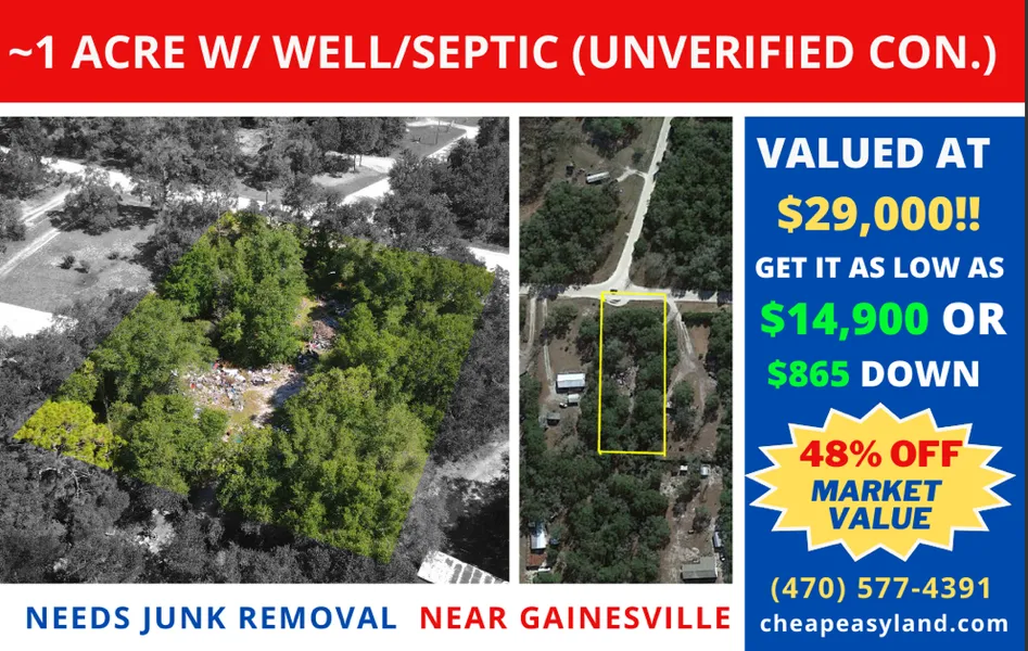 THIS PROPERTY IS SIGNIFICANTLY DISCOUNTED BECAUSE ON THE AMOUNT OF JUNK ON THE PROPERTY.