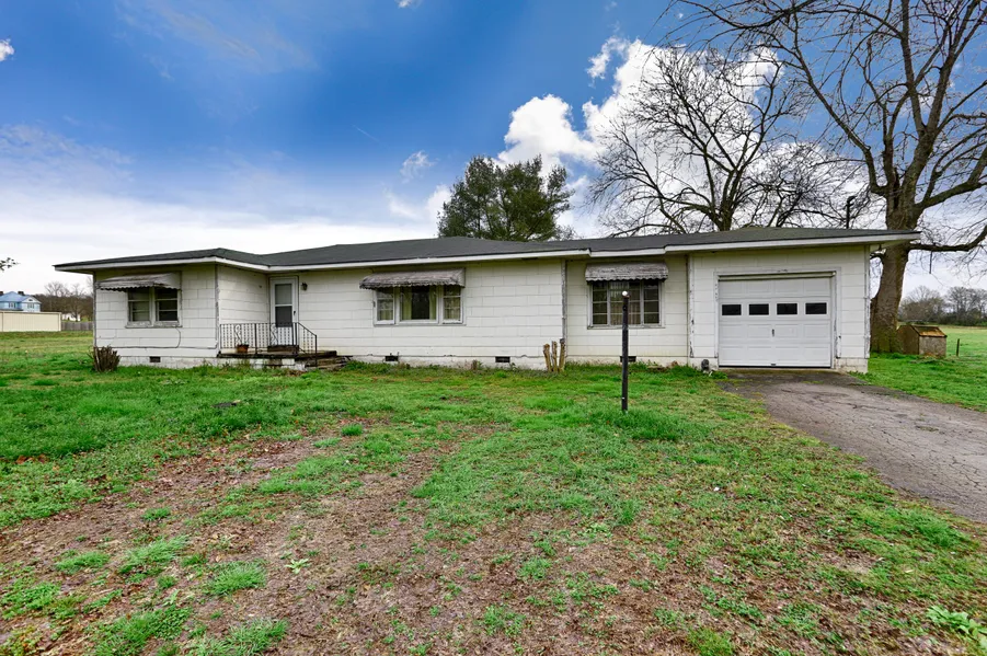 3 bedroom, 1 bath home with 1 car garage on a restricted tract of 18 acres. This property offers original hardwood flooring throughout the home, seasonal creek in front of home, a metal barn all sitting on great pasture land. Several other excellent building sites on the property. 992 ft of road frontage. Great location less than 5 minutes from I-65.
