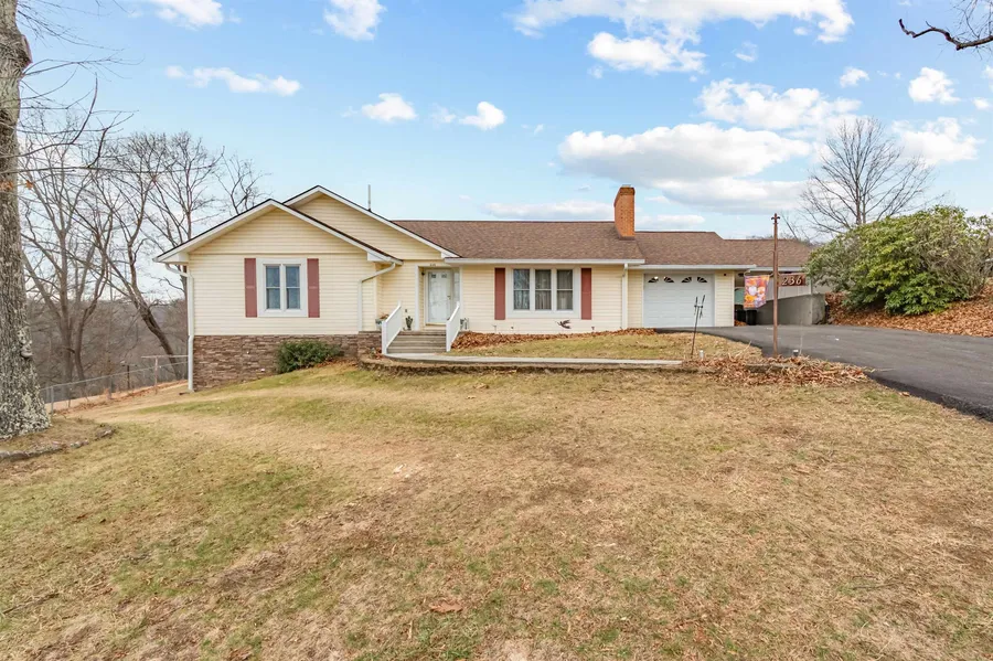 Welcome to 236 Smith Street! This lovingly cared for home is not only conveniently located, but it so many features that make it wonderful. From the hardwood floors on the main level, the open kitchen and living spaces, the gorgeous mountain views, and the huge garage & workshop, there's something for everyone to love! The main floor has a bright, open living space with a feature masonry fireplace and a sunroom overlooking the backyard. You'll also find a spacious primary suite, two more well-sized bedrooms, and a second full bathroom with updates. The lower level has a full basement that is partially finished with a large den that has another masonry fireplace and a woodstove insert, plus an unfinished section with a second kitchen, plenty of storage, and double doors walking out to the side yard. The home has a single garage, a single carport, and a huge detached garage for extra parking or perfect for the workshop you've always wanted and a whole home generator too!