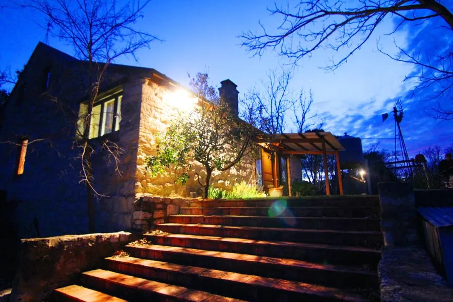 Hand quarried Texas limestone 1856 early German settler home on 11.33 beautiful Texas Hill Country rolling acres that were part of the original German Outlots that the State of Texas patented to Baron Otfried de Meusebach in 1848. Historic stone block home has a tasteful addition and deck across the back and side, great windows and features thick stone walls, wide pine plank floors, beamed ceilings, ceramic tile and multiple fireplaces. The old Texas limestone historic barn was also remodeled into living and storage space - a barndominium- and includes a fireplace, full bath and more. In ground swimming pool and cabana. Historic Aermotor windmill and Otto Kolmeir water cistern (or storage tank) on stand. Cute 3 bedroom 1 bath red guest house also on property is currently rented. Would make a great Bed & Breakfast or family compound. Flat land for horses along with scenic rolling Hill Country land and wet weather creek below. Property is estimated to be 80% fenced. There are 2 water wells and 3 septic systems.