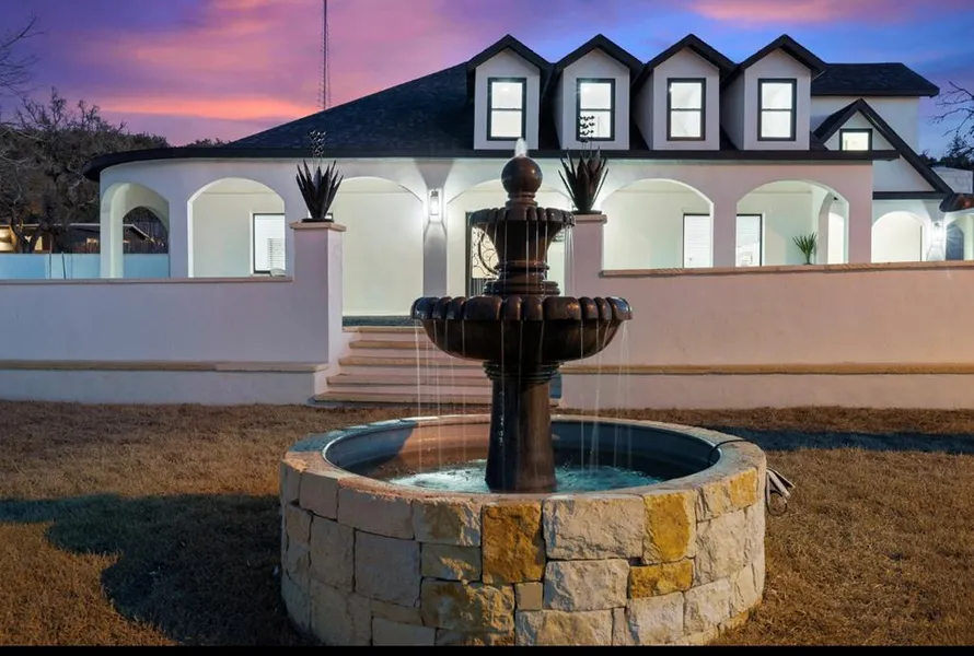 Welcome to Hacienda Agave! This 12-bedroom/9.5-bathroom total property features a gourmet kitchen with state-of-the-art appliances, a spacious living room that is great for entertaining, and beautiful marbled tile floors throughout the property. Perfect for weddings and events, Hacienda Agave includes 5 charming guesthouses, an event venue, and a relaxing resort-style private pool. Each guesthouse provides a kitchenette with a stainless-steel refrigerator, a microwave, and a coffee maker to get you going in the morning, dining areas, and TVs in the living areas and bedrooms. The bathrooms include modern and stylish upgrades. The venue offers covered seating, two majestic outdoor fireplaces, a built-in bar, a sound system, kitchen space, and lush greenery. The ceremonies and get-togethers will ensure that memories will be made to last a lifetime. Located on the edge of the city limits and just 6 minutes away from the heart of Fredericksburg, Texas. Enjoy stunning Hill Country views! Outdoor lounge seating area, bar area, and kitchen for caterers. The entire property sleeps a total of 32 guests.