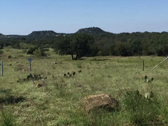 Historic rock home with a Historic marker on 116 acres, good deer, turkey and hog hunting. Views of Enchanted Rock and surrounding mountains. Property has one field and the balance is native pasture and very thick brush with large post oak trees. Several pipe lines cross the north part of the property. One stock pond and a seasonal spring. Paved county road access. The house has been partially restored and an old cistern is part of the history.