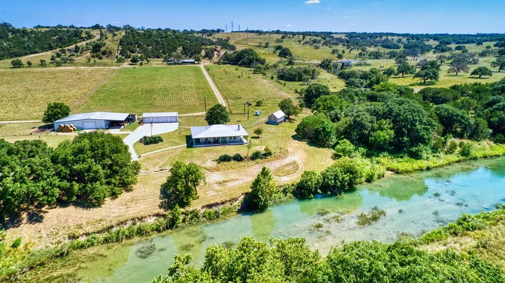 Hard to find one of a kind secluded, peaceful ag exempt 27 acres with end of the road privacy and both sides of the Pedernales River. Country farmhouse with wrap around covered porch offers two bedrooms and two baths with a rock fireplace in the living room. Pastoral, scenic property with good soil suitable for growing. Property consists of native and improved pasture. Approximately six irrigated acres ready for grape or olive vineyard or fruit orchard. Fantastic outbuildings include 40 x 50 shop/equipment barn, 4 car detached garage/shop. This is a multi-use property with pretty views, live water, tree lined drive up to the house.