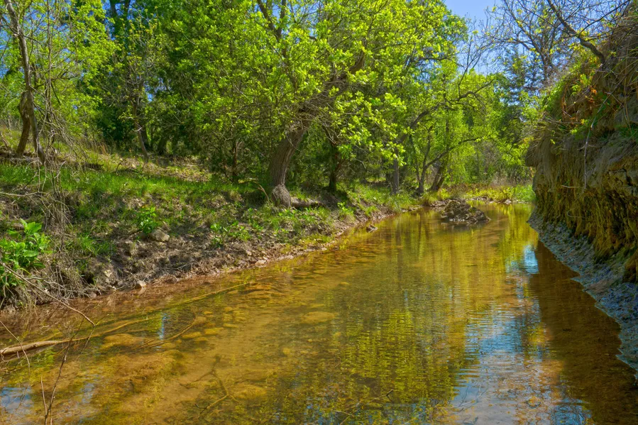 An unnamed creek which eventually flows into Barons Creek, runs for approximately 3,160 or 0.57 miles east-west through the southern section of the property. With live flowing water, a hard, limestone bottom, and towering cliffs along the south side, this creek offers an opportunity to impound small or large pools of water in a picturesque creek bottom setting, dotted with native Pecan, Live oak, Spanish oak, and a diverse variety of other native tree species. True live water in such close proximity to Fredericksburg makes this a very unique offering. There is also a seasonal, secondary drainage that flows north-south into the primary creek that runs for approximately 2,385 or 0.45 miles. This drainage offers further opportunity to develop water for aesthetic beauty, wildlife, and/or livestock.