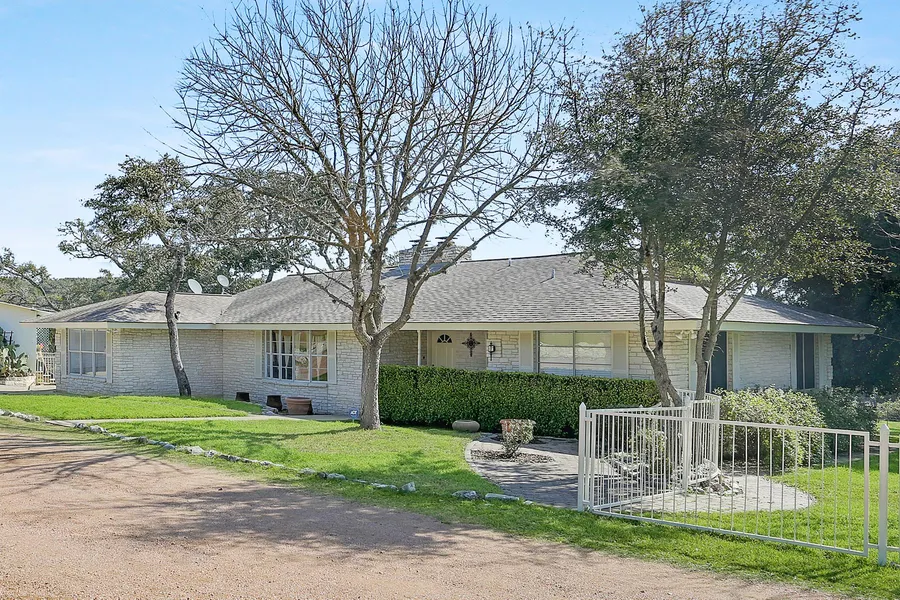 Truly a Hill Country gem on 5.37 acres with iconic Boot Ranch Country Club as your neighbor. Updated 1 story, 3 bedroom, 2 bathroom, office in a spacious 2,306 square feet. Two separate stone fireplaces with natural gas logs. Updated kitchen with large Granite island and premier stainless steel appliances. Wrap around patio designed to transform indoor comfort to outdoor living. Over size cement, block garage/workshop with plumbing. RV storage carport with water, power, and septic field. Gated private entry, fenced and cross fenced with vegetable garden and future orchard irrigation.Owner occupied and well maintained . Peaceful setting . Updated kitchen and rear deck . Gated entry . fenced and cross fenced . Atmos Energy gas line on one perimeter that has meter for the residence . RV Storage port . Sentrilock box on iron gate to the right of the front porch