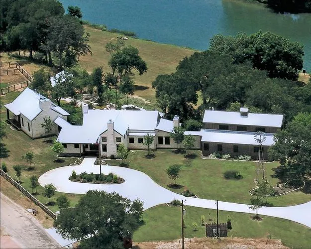 One of the most outstanding homes in Gillespie County overlooking the Pedernales River, built in 2008, large great room with firplace and large great room with fireplace and large log beams, formal dining with fireplace, large open kitchen with commercial 6 burner cooktop, 3 ovens, refrigerator drawers, breakfast area with fireplace, large master bathroom with jacuzzi tub,antique vanity, large double shower, childrens suite with 3 BR, 2 baths, study area, large two car garage with childrens area above, two car garage and large two car garage for trucks-RV's pool with rock waterfall. Hot tub, outdoor coverd BBQ area with giant pit, shower/bath overlooking the river, fishing and canoeing, balck patio with outdoor kitchen, standing seam metal roof, gated entry, sprinkler system, many extras, house can be bought with an additional 4.41 acres and German Guest house approx. 2000 sq. ft for $2,...