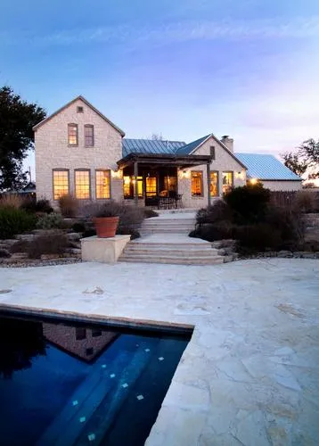 Custom stone home overlooking the beautiful Pedernales River. Limestone counters, cypress 10 ft. ceilings, wide plank Maple wood floors. Jenn-air gas range with convection oven. The 1/1 guest house overlooks the heated pool & the river. Workshop also has bedroom & bath. A flatscreen TV above the Limestone fireplace in the living room has surround sound. With 4 patios & dog trot/carport southerly breezes will be easy to find to watch the sunset. Sprinkler system, security system, and fabulous limestone floors in kitchen with butcher block island. Washer/dryer in master bath & jetted tub. AC zoned. 2 propane tanks, one for the pools and one for the home. 2 wells, 50 gpm & 10 gpm & 10 gpm. Guest house/pool house is 490 sq. ft. with wine frig. and ice maker. 572 sq. ft. workshop. Over 343 ft. of river frontage.