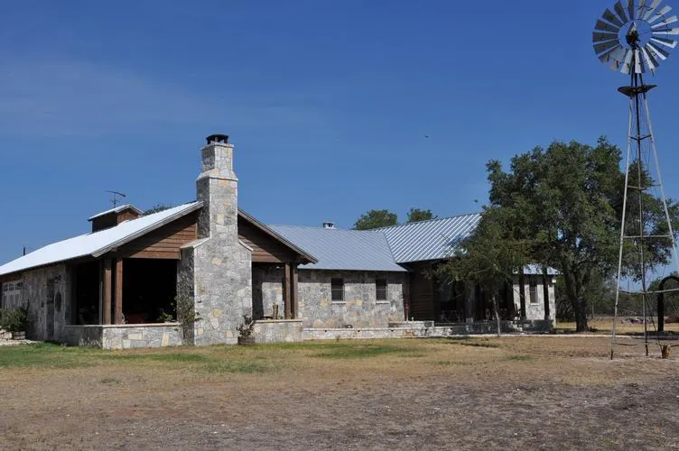 Get ready to be surprised at what you find behind this gated entry and at the end of the paved driveway of this one just west of Harper and only a mile S. of Hwy 290. Lots of bells and whistles here, travertine and wood floors, high and vaulted ceilings, 8' doors, a chef's kitchen with dream appliances and lots of counters, wet bar in great room, large closets, master bath with Jazz and huge shower with rainhead, spacious guest rooms. And then there is the outdoor living space, 900 SF of covered patio, fireplace, bar, kitchen, 2 flat screens to watch the games, if you entertain well, see this! In addition to all the amenities the home has to offer, the perimeter fence is new, there is a metal building to park ranch equipment under and another building that is used to store a boat, could have many other uses as well. There is also an attached 3 car garage. And if you are wanting to fix real bar-b-que, you gotta see the pit here, you could cook for the fire department fundraiser here!