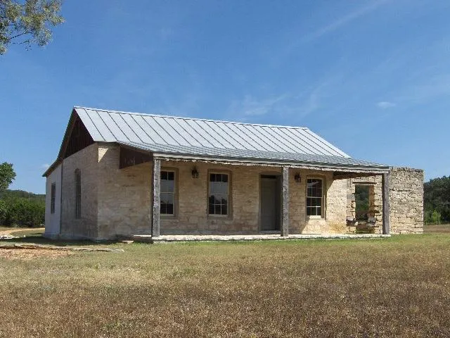 Picture yourself riding up in your horse and buggy to this old 1800's German cut stone home. You'll love this property with 9.69 Acres to dream about yester-year. Stock tank and vintage barn, old hand dug well. Perfect Weekender or expansion home has been totally remodeled with central heat/air, washer/dryer, wood floors, wood ceiling, interior rock walls and big front porch with OLD HORSE BUGGY SWING. Enjoy Texas Hill Country Views, cozy quite living under century oaks shady tree with an cold ice tea and plan a luxurious home of your dreams. Excellent property for vineyard, Horses & livestock.