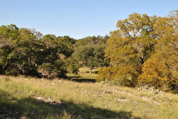The rolling terrain of this private 4.5 acres funnels into a couple of limestone lined draws with a mix of Spanish Oak, Cedar Elm, Walnut, Live Oak trees and Shin Oak brush. It is perimeter fenced and has a small barn and two small fenced traps. The easement lane access to the property is fenced. It does not have a water well or electric service. The terrain, trees and surrounding larger ranches make this hide-away seem larger than it is.