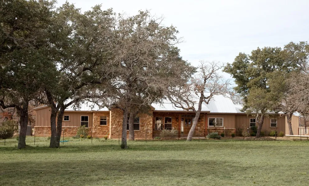 THIS CONTEMPORARY HILL COUNTRY STYLE HOME IS PERFECTLY LOCATED AT PRESTIGIOUS RIVER BEND, CLOSE TO FREDERICKSBURG. THE STYLISH HOME WAS BUILT IN 2008. THE 11.97 +/- ACRES ARE GATED, FENCED, CROSS FENCED WITH A BARN & EQUIPMENT STORAGE BUILDING, VERY HORSE FRIENDLY PASTURES WITH BIG POST OAK AND LIVE OAK TREES, NO ROCKS AND SANDY / LOAMY SOIL WITH GOOD VIEWS. AG TAX EXEMPT. THIS PROPERTY IS VERY WELL SET UP FOR HORSES OR LLAMAS AND IS FULLY DOG FENCED AROUND THE HOME. WOW....100 GPM WELL AT 160 FEET.
