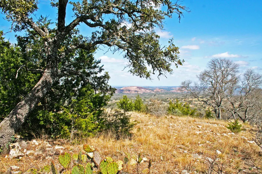 Terrain: The ranch is picturesque Texas Hill Country, with over 400 feet of elevation changes, offering incredible views up to 30 miles in all directions, including pristine views of Enchanted Rock, just 3 miles away. The terrain ranges from fertile dark soils in the bottomlands to gently rolling hills studded with granite outcroppings to shear rock faces climbing to high hill tops. The highest elevation is a 1,963 feet peak. The ranch is covered in live oak, post oak, elm, cedar, and native brush.