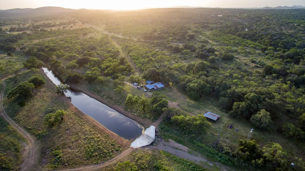 490 ac ranch is 2.5 miles from Enchanted Rock. Ranch has spring, seasonal creek, 3 wells 1-100GPM, 1-22GPM, 1-8GPM, dam on the seasonal creek (3,900 +/- feet of the Keener Branch) to provide a great water feature next to the cabin and a small tank (estimated at 1.5 ac). The views are exceptional in all directions and super views of Enchanted Rock. Property has many draws and smaller seasonal creek through out the ranch. Granite outcroppings are stunning and in numerous places. There are many types of native grasses and trees. There is not a lot of cedar on the property. Seller has cleared about 100+ acres of Bee Brush, cactus and other misc scrubs and planted food plots for dove, turkey, and deer. There is also a clay pit for road base and to line additional tanks. The 8 GPM well is on a hill top with great views of Enchanted Rock.