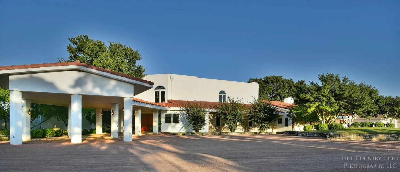AS YOU ARRIVE at the entrance of the ranch, although you are on a county road and about to cross a cattle guard with a massive masonry wall on either side, one is struck with the impression that you are about to enter private estate lacking the gate. Once past that main entrance, another smaller version appears and welcomes you to lush landscaping which surrounds the home and frames your approach to the residence.