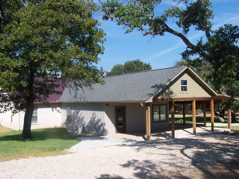 Beautiful Home on 3.5 acres with country kitchen accented by large granite countertops overlooking the spacious living room. A 792 sq.ft. great room with loft and beautiful soaring ceilings has been recently added for entertaining. Large Master BR with His/Her closets along with a master bath with double sink vanity, walk-in shower and tub. Expanded covered porches on two sides of the home provides shade to enjoy the cool breeze while overlooking the treed property which consists of Liveoak, Post Oak and Spanish Oak. Also includes an enclosed 1500 sq.ft. insulated metal building with A/C.