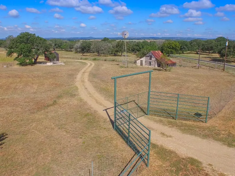 The front 84 acres is extremely fertile red dirt land which would be perfect for coastal hay production, grapes, peaches or grazing. A fully restored old German 3 room house is flanked by a high pitch cedar 3 bay barn complete with full bathroom & shower/septic. A strong 50 GPM water well is run through the property offering water to each pasture.