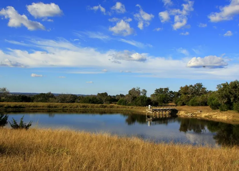 This diverse 54+/- acre tract offers a blank slate for hunting, recreation, agricultural use, or building your dream home in the Hill Country. Several elevated building sites offer incredible views just five miles southeast of Fredericksburg, in the heart of the Texas Wine Corridor. Bring your fishing pole and enjoy the pond stocked with bass and perch. Wildlife abounds including whitetail, axis, and wild turkey. A 17 gpm well and underground electric utilities are in place. Additional acreage available that provides a total of 110 +/- acres with stunning Pedernales River frontage.