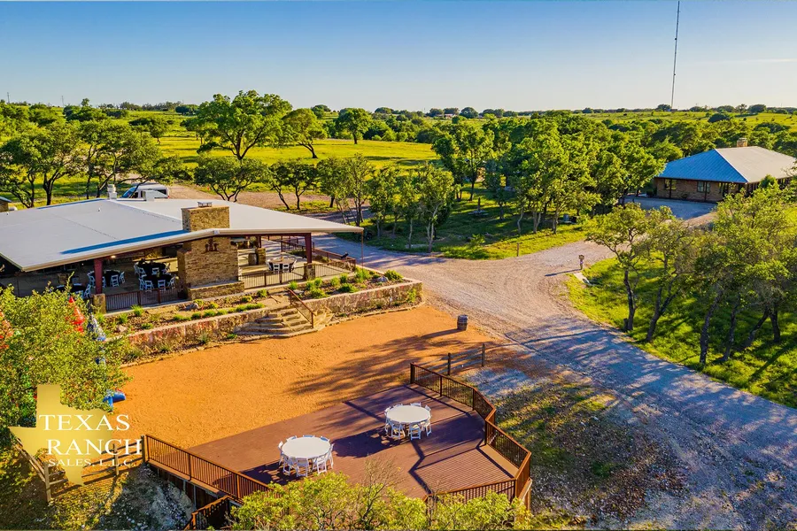 The ranch has a one-of-a-kind headquarters and lodging area, which consists of a 3,800 square-foot main home with four bedrooms, two-and-a-half bathrooms, a 1212 walk-in safe, and a wrap-around front porch. In addition, there is a spacious event center that offers an indoor dining room, 5050 covered entertaining area, commercial kitchen and walk-in cooler, large rock fireplace, men and womens bathrooms, and an office and storage area. This is the perfect setup for family get-togethers, wedding receptions, corporate dinners, fundraising events, and more!