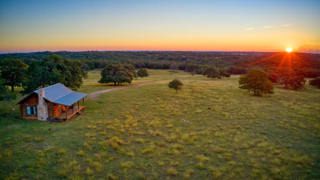 The rustic cabin sits on one of the highest point of the subdivision, with panoramic views for up to 20 miles. The highest point has been cleared of all but the most majestic old oak trees. Property includes a working windmill, tool shed and small equipment barns. Two draws come together on this property as tributaries of the wet weather creek. More than half the property has been cleared, but there still remains patches of thick cedar and oak cover for wildlife habitat and privacy. The eastern edge has a large cleared powerline easement, great for hunting. The highest points of this tract are near the existing cabin and along the northern edge of the estate