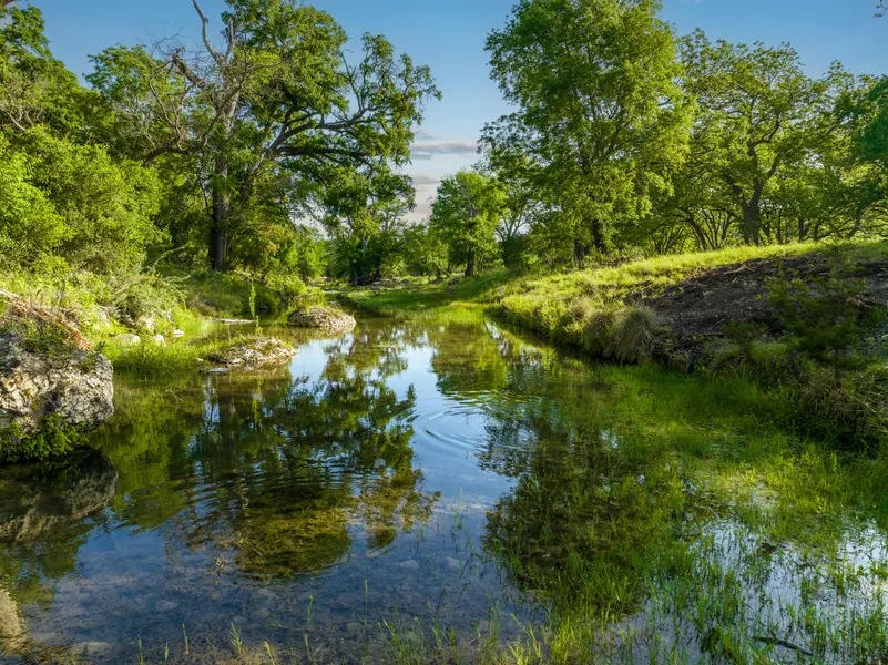 The ranch features approximately 1.75 miles of Salt Creek winding through its heart, creating rich bottomlands that nurture spectacular pecan groves and magnificent legacy live oaks. Numerous springs bubble forth, feeding into the creek beds and sustaining the vibrant ecosystem.
