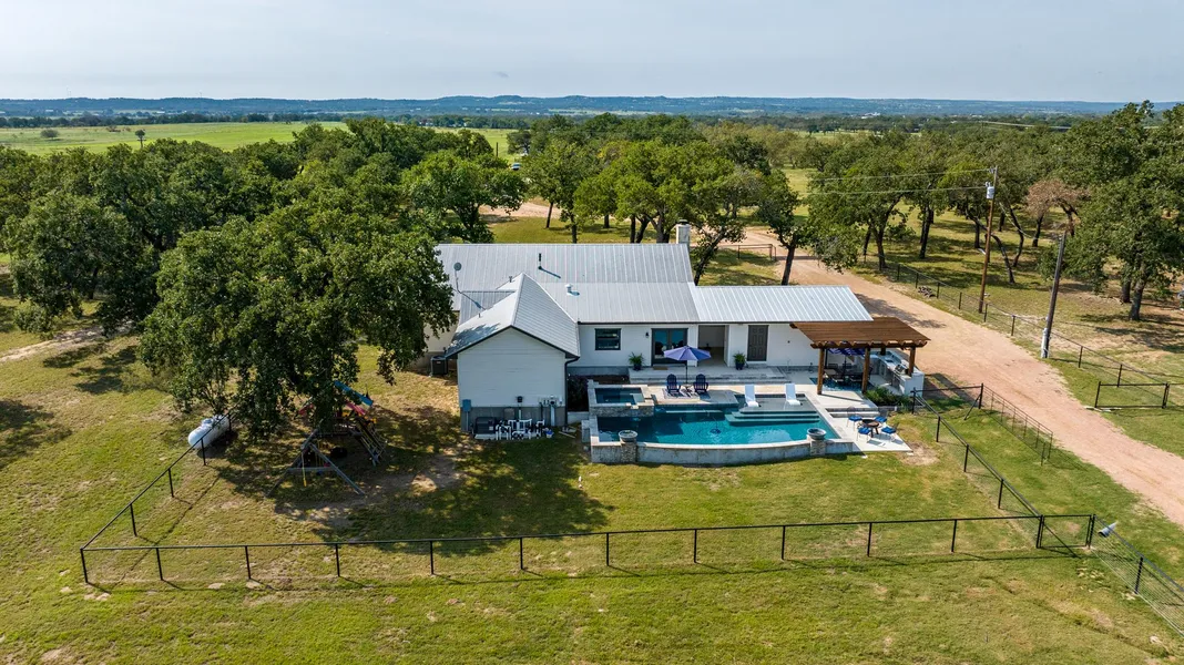 A Needle in a Haystack. Country living at its finest located on an UNRESTRICTED ~13.7 AC that is less than 3 miles from Main Street of Fredericksburg. This traditional hill country home is nestled amongst a plethora of Post Oak & Live Oak trees while Salt Branch Creek traverses through the property. This property invites you to bask in the tranquility and peacefulness of the serene hill country surrounded by cattle grazing, chickens in their chicken coop & established raised gardens. The property epitomizes the quintessential Hill Country dream. Renovations in 2018 & 2021 were made to update and expand the following: an interior chefs kitchen, an outdoor kitchen, a custom pool & hot tub, new interior pipe fencing, roads & the construction of a metal barn building. The barn consists of 800 sq ft of air-conditioned space that includes a full bath which is currently utilized as an office sp...