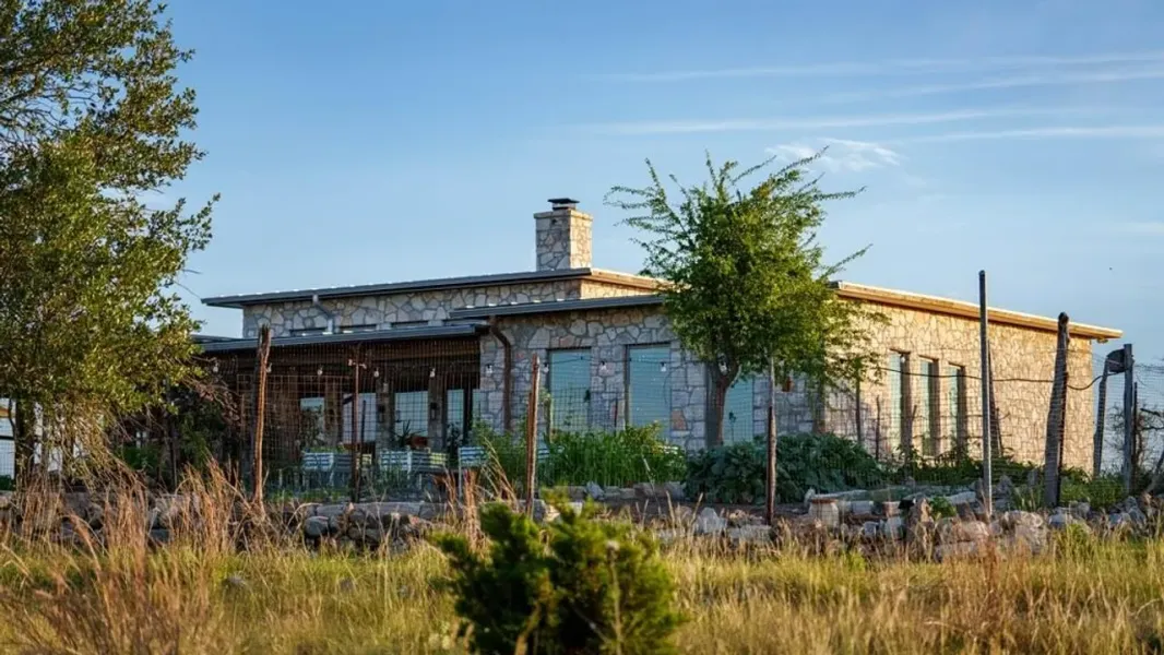Experience refined living on 100 rolling acres just 13 miles from Fredericksburg. This eco-friendly estate blends modern efficiency with timeless Hill Country beauty. The custom main home features native rock construction, energy-efficient design, and panoramic views of oak-covered hills. Enjoy an open-concept layout with bamboo and slate floors, a chef’s kitchen with Energy Star appliances, and expansive windows framing stunning vistas. Outdoor living shines with a spacious back porch, kitchen/grill area, fruit trees, and gardens. Additional highlights include a renovated guest house, 17-acre high-fenced vineyard, 30,000-gallon rainwater system with 100 +gpm well backup, wildlife exemption, and turnkey furnishings. Perfectly positioned for privacy yet convenient to Fredericksburg, Austin, and San Antonio, this property offers sustainable luxury in the heart of the Texas Hill Country.