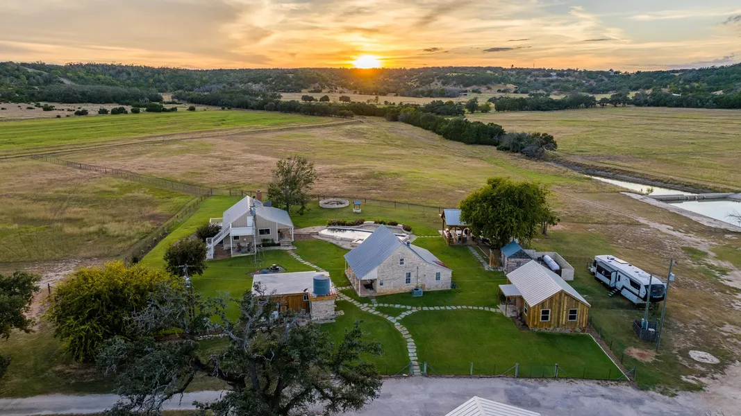 The tract includes a beautifully restored 1BR/1BA stone home with original 1850s details plus a 2BR/2BA main residence, and two additional 1BR/1BA guest cottagesideal for extended family, guests, or income-producing rentals. A 19th-century root cellar has been transformed into a climate-controlled wine room, while the resort-style pool serves as the centerpiece of outdoor living. The pool area features a stunning antique-timber cabana with a stone fireplace, outdoor kitchen, wine fridge, ice maker, warming drawer, stainless appliances, and ample storageperfect for entertaining under the Hill Country sky.