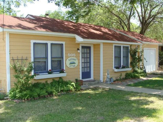 TURN-KEY B&B OPERATION listed with Gasthaus Schmidt Reservation Service since Fall 2008 and operated by the current owners since March 2006. Very sweet cottage look, reminds you of the 30's-40's era. Excellent location, ideal for couples or small families. Most of the furnishings & decor will stay with the home. Some quilts will not convey. Yard equipment in garage will not convey. Laundry facilities located in utility/storage. Exterior repainted & bathroom was redone in past year. Plumbing under house completely replaced less than 3 yrs. ago. Roof replaced '05-06. This is a darling B&B & very convenient to Main St. shopping. Owners are living in Germany currently but have an excellent caretaker. There is a Bluebonnet Cottage B&B website, the rights to it & to the name will be included in the sale of the property. Washer/Dryer in utility/storage stays. Stains on ceiling of left side bedroom are from before roof replaced,no leaks now.