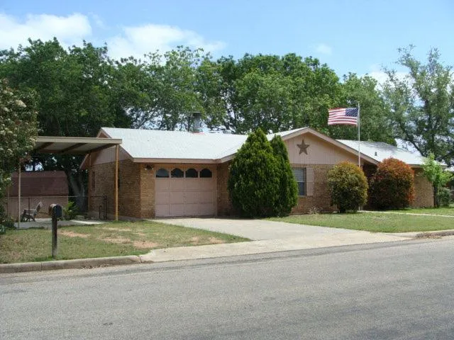 Really nice, spacious brick home with open floor plan; lots of kitchen counter space, pantry, and appliances incl blt in microwave, range/oven, DW, & refrigerator. Breakfast area in front of bay window area. Utility off kitchen & washer/dryer can be included. Also has storage cabinets & deep utility sink. Utility accesses dbl door garage w/auto door openers & wall of storage cabinets & sm workbench. Living dining combo is large & open with French doors at one end into den/office, or sunroom. BR 2 has attached bathroom w/tub shower, while larger bedroom has bay window sitting area & W-I closet, but bath w/tub-shower accesses from hall. Carpets are in good condition but dated. Wood look vinyl flooring in den.There is very little backyard, but a large open side yard to the East side of house. Garage enters on the West side or from Dawn Ln. Front of house has nice porch and enters from Sunri...