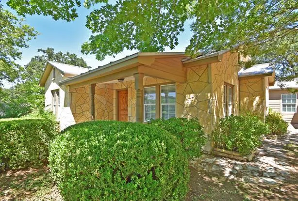 From the street, look behind the screen and experience a large private, .64 acre (92X300 lot) setting in town that features a 3 bedroom, 3 bath home that was updated in 2013-14. It has beautiful wood floors, living room, den, rock fireplace, standing seam metal roof, deck, large trees, pool. Some of the updates that were done include kitchen, baths, electric, plumbing, A/C. Home is offered fully furnished. All you need to bring is your toothbrush, clothes, groceries. Being zoned R-2, it is ideal for use as a B&B or as your residence.