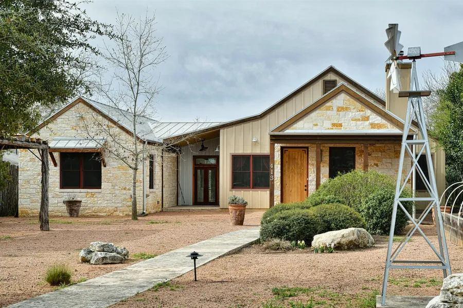Hiding towards the back of this 4/10's acre lot, this Hill Country home of stone & board/batten exterior features 3/3 with surprising amenities: 2 water closets in master bath, Fisher-Paykel frig & dishwasher, Viking gas range, temperature/humidity controlled pantry/wine room. 8' doors, foam insulation, smart HVAC system, fireplace, tankless gas water heaters, stained concrete floors. The yard is Xeriscape landscaping. Oversized garage is accessed from alley at back of property. The look, size and best of all that location near downtown, little traffic on this part of Schubert.