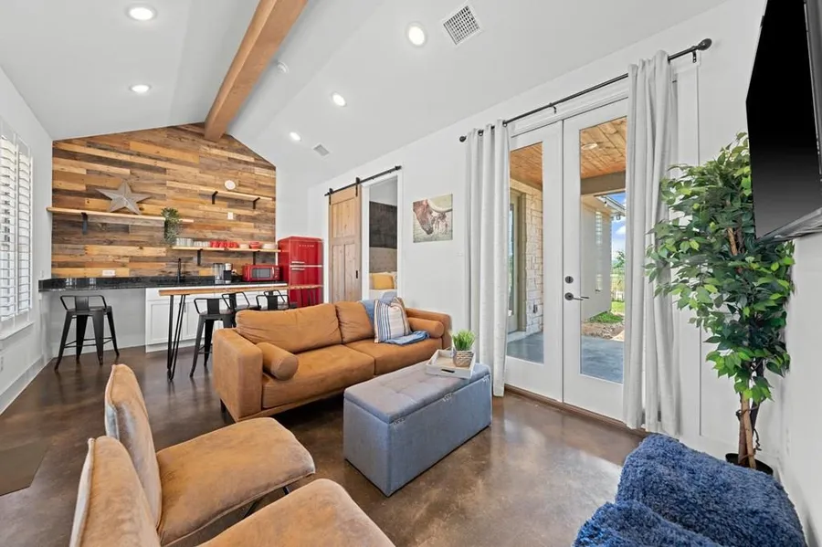 INCOME PRODUCING PROPERTY WITH ROOM FOR FUTURE DEVELOPMENT: 12 custom built cottages on 15 ACS. Located less than 1 mile from the renowned 290 wine corridor & only 4 miles from Fredericksburgs Marktplatz, this B&B resort is in a prime location for guests to explore Fredericksburgs shopping, dining & the Texas wine corridor. Each cottage was built with quality rock & stucco exteriors & standing seam roofs. Inside, vaulted ceilings, stained concrete floors & a wood shiplap wall add a cozy elegance. The main bathrooms feature luxurious amenities: free-standing soaking tubs, custom tile showers, & dual sinks. Some cottages have hot tubs & some are pet friendly. Accommodations vary with four 1-bedroom cottages (sleeping 2), four 2-bedroom, 2-bath cottages (sleeping 4), & four 2-bedroom, 2-bath cottages with a bunk room (sleeping 8) with a capacity to sleep up to 56 guests. The property has an...