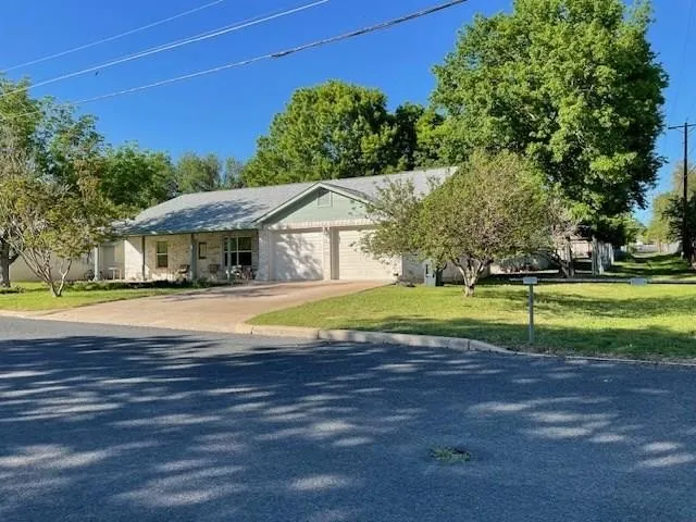 WELL ESTABLISHED FRIENDLY NEIGHBORHOOD: 3 bedroom, 2 bath house located close to all Fredericksburg amenities and surrounding Hill Country attractions . Perfect for walking, jogging, or biking to Main St. or Cross Mountain. Relax and enjoy the peacefulness of the large front covered porch shaded by a mature tree to watch the birds and butterflies. The house has large bedrooms. A cathedral ceiling in the common area provides alot of light and openness. Recent upgrades include: new kitchen granite countertops, sink, faucet and garbage disposal (2025); the roof, gutters, double pane windows, insulated garage doors, and double detection smoke alarms (2023-2024). Custom solid wood cabinets are in the kitchen, bathrooms and laundry room. The living area has wood flooring . The stainless steel range has many features including a convection oven. The stainless steel KitchenAid dishwasher is very quiet. A sprinkler system covers the entire yard. There is a large shed with a covered porch. The door to the shed is from an old farm house on Knopp School Road. The two car garage has a storage room. The laundry room is inside house . No HOA. Leaving the updating for your personal touch. Don't miss the opportunity to select this property on your viewing list. The home is in a great centrally located neighborhood. ROOM SIZES: Primary bedroom: 18 X 14; 2ndary bedroom: 15 X 12; 3rd bedroom: 13 X 11. CLOSING: FUNDING; possession 30 TO 60 DAYS