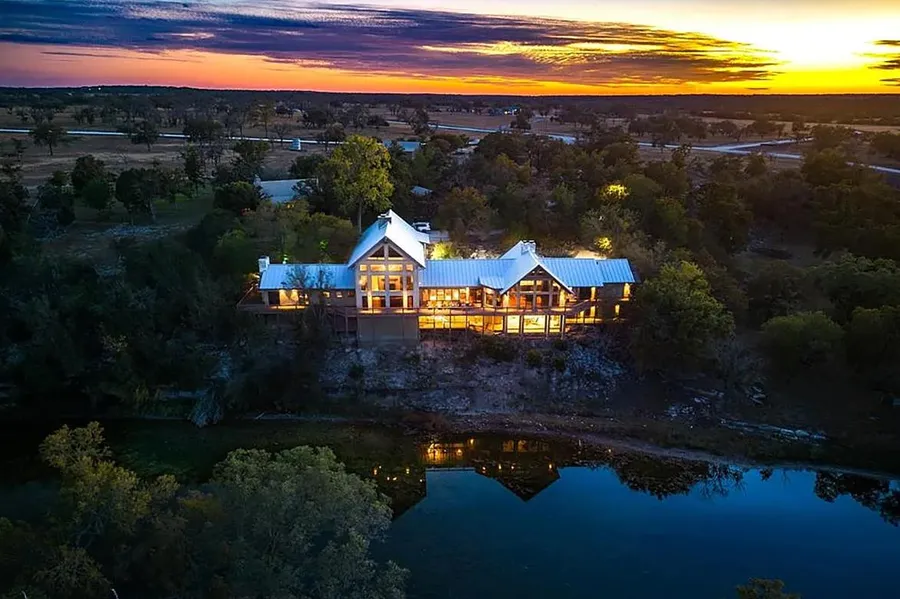 Perched on a hilltop, this custom-built residence provides breathtaking views of the mile-long stretch of two converging, spring-fed live water creeks, Klein Branch and Stevens Creek. Furthermore, a large, concrete dam intersects with the creeks resulting in 1,600 ft of frontage on a private, year-round lake. The two contiguous parcels, totaling more than 21 acres, offer manicured lawns complimented by towering oak trees, exotic wildlife, and picturesque creek bluffs all nestled within Hill Countrys luxury acreage community: Maverick.