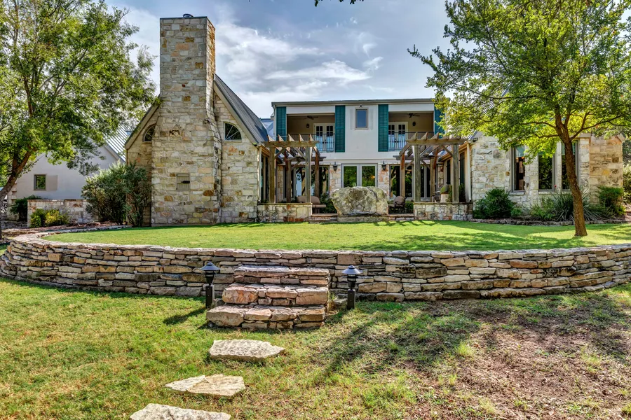 This Hill Country home is 3,483 Sq Ft-4 BR/3.5 BA with an office, dining room, great room and many outstanding patios. Kitchen is great for entertaining and family dinners. The views to the north & west are spectacular from your own hill top. Outdoor grilling patio is spacious and inviting. The home flows well for entertaining guest to family time. Home is supplied with a rain water collection system in addition to the water well. 2 x 1,500 SF barns, 30 KW back up generator, 16,000 gallon rain water collection tank. 13.61 acres with beautiful trees, nice landscaping, and great views 6 miles N RR965