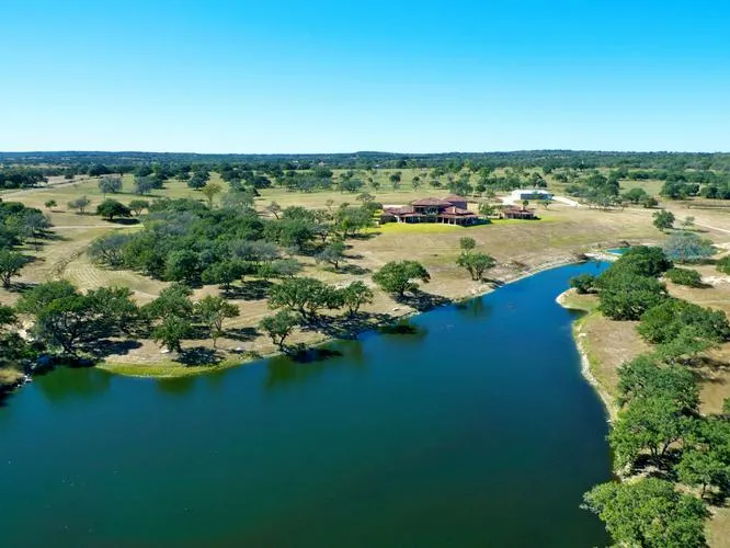 Inspired by the European countryside, this treasure ranch harbors gracious living, stunning improvements & rare proximity to historic Fredericksburg. Grand space, graceful arches, columns, & an impressive architectural staircase integrate rich natural materils & subtle elegance. The estate features state-of-the-art AV & lighting, exquisite fixtures & appliances. The design incorporates 4 bedrooms, 4 full baths, 3 half-baths, an elevator, butler's pantry, wine cellar, media room, loggia with grill kitchen, an 1100 s.f. guesthouse and a substantial metal barn set on 95 acres edged by a 4-acre stocked pond.