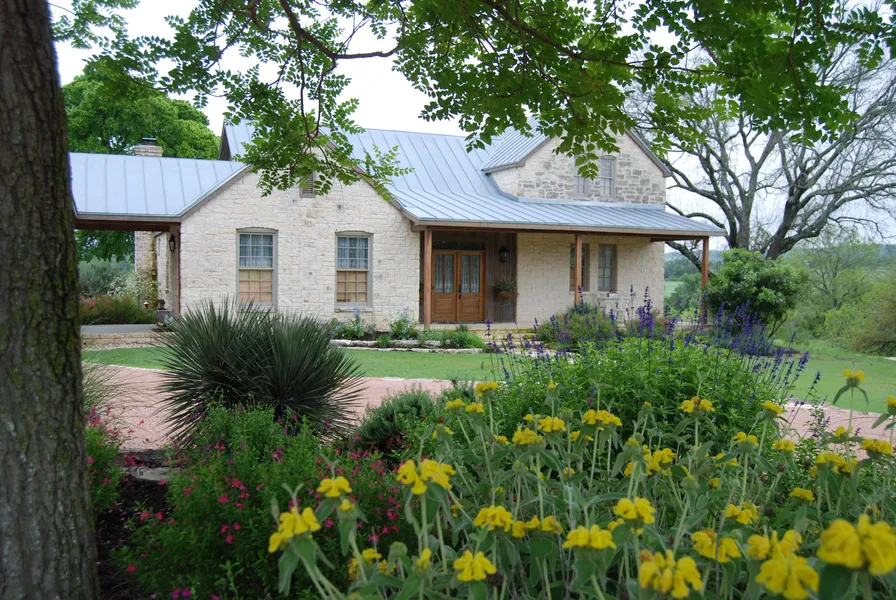 This early German style rock home sits on 5 manicured +- acres on the banks of the Pedernales River . Inside the 3 bedroom 2 bath main residence nothing has been spared gourmet kitchen, separate dining area, open living room with gas fireplace and a screened in porch all finished with unique rustic details that create an easygoing elegance . The quest houses are as charming as the main house with similar Hill Country style your guest can enjoy the bunkhouse with its open gathering area , kitchenette , and a separate bedroom. . The house also has a open living room and kitchen with a loft bedroom . The outdoor living areas takes advantage of the distant views and breezes, the pool and BBQ area overlook the go...