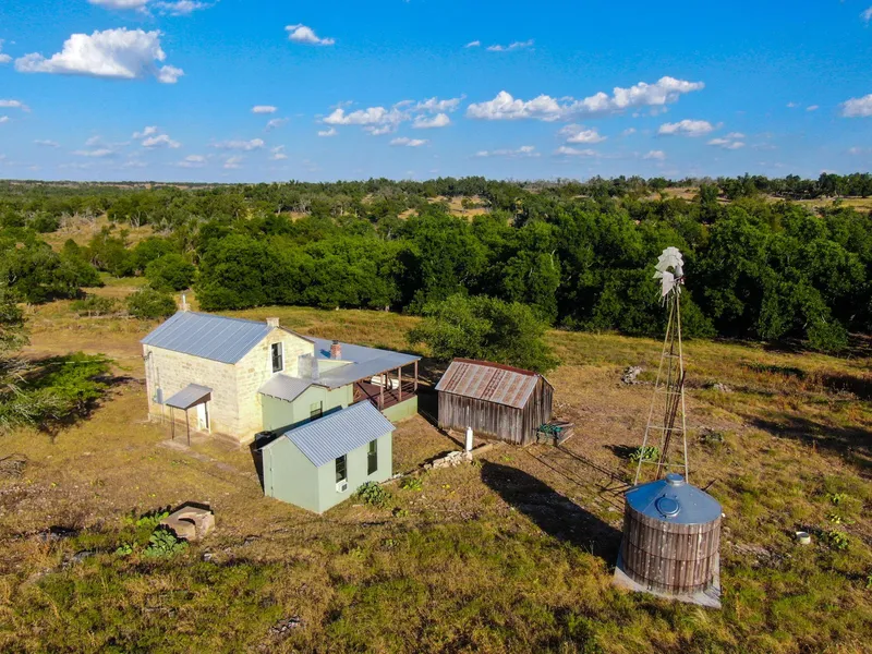 Located approx 25 minutes northwest of Fredericksburg TX, the 120 acre Pecan Springs Ranch awaits your personal touch. Over 90 acres of the parcel have been left natural and raw. The remaining acreage located near the primary home has been mostly cleared. A dirt drive to the main German rock home leads to much of the potential this tract offers. Bordering the natural spring are dozens of native pecans and other hardwoods. The main home boasts a furnished kitchen, fully air-conditioned space with living and 2 bedrooms/1bath all under a tin roof. Recently remodeled, the home comes turn-key, furnished with all appliances. An old lean-to shed currently houses a UTV in the shade of an old windmill. Freshly reworked plumbing from the new well pump runs to the main home and guest quarters. The guest cottage contains approximately 200 sq ft as a 1 bed/1bath with window A/C unit. Both electricity and propane are on site.